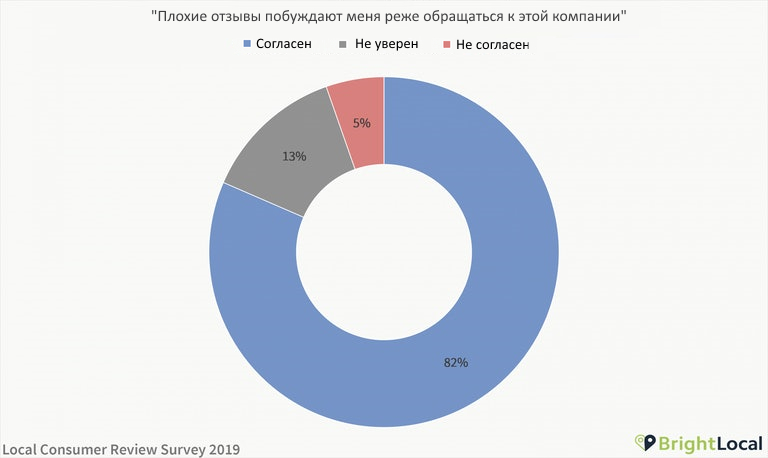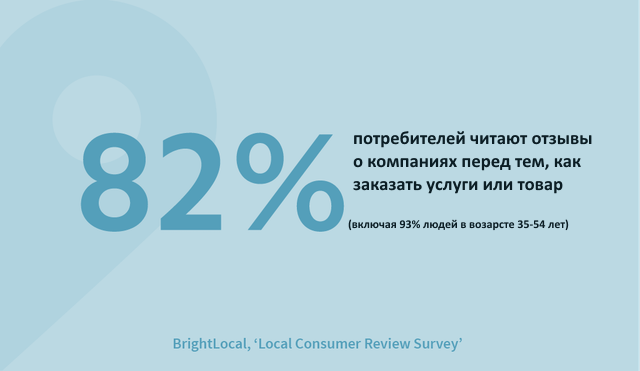 SaaS-платформа BrightLocal проводила в конце 2019 года опрос, который показал, что 82 % клиентов