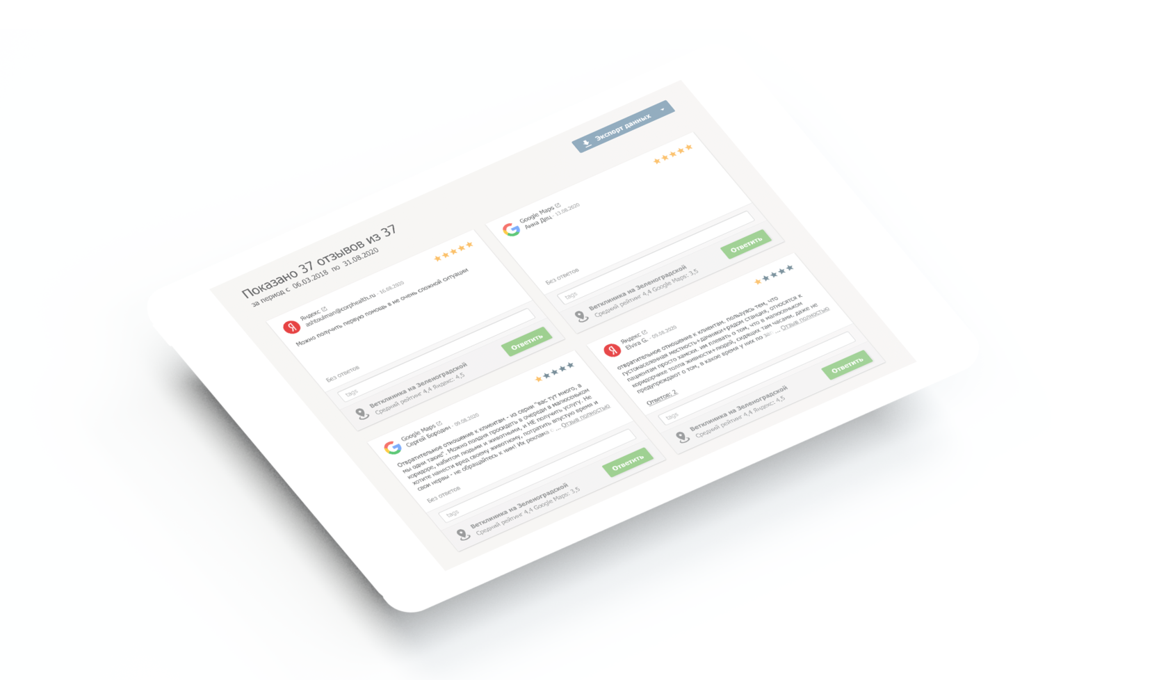 отзывы из 2GIS, «Яндекс.Карт», Google Maps и еще 13 площадок. Для чтения и ответа на комментарий